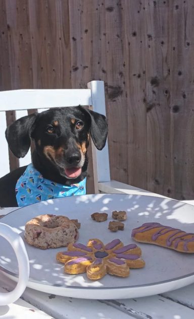 Today, we create a range of biscuits, baked donuts and decorated treats, including personalised designs for special moments and celebrations. All of our recipes are made in small batches using gram (chickpea) flour and carefully selected, dog-safe ingredients. Our treats are intended to be enjoyed as complementary pet food for dogs, fed in moderation as part of a balanced diet.